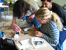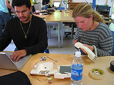 | Project Name: hear me listen Using a phone to listen to pre-recorded stories by telling your own. Audience: The user will enter the space to find a telephone in one corner and speakers in the other. As the viewer gets within a few feet of the phone a sensor will be triggered. If the listner answers the ringing phone they will hear part of a previously recorded story. At that point the listner will be asked to add their own story to hear the rest of the story. User Experience: Picking up a ringing phone, the listener will hear part of the story left by a previous user. The listener will then be able to add to the story as they are recorded by the phone. Tech specs : Audio input/output device, automatic audio recording machine, narrative playback system Tech Challenge: Our challenge was to have a user communicate with other users. We learned that proper planning will allow for more efficient use of time. Social Aspect of project: To reinstall in our culture the ability to listen to each other. Through the oral tradition, we will have people tell a story that triggers someone elses story. The end result is that two random individuals will communicate a story to each other. |