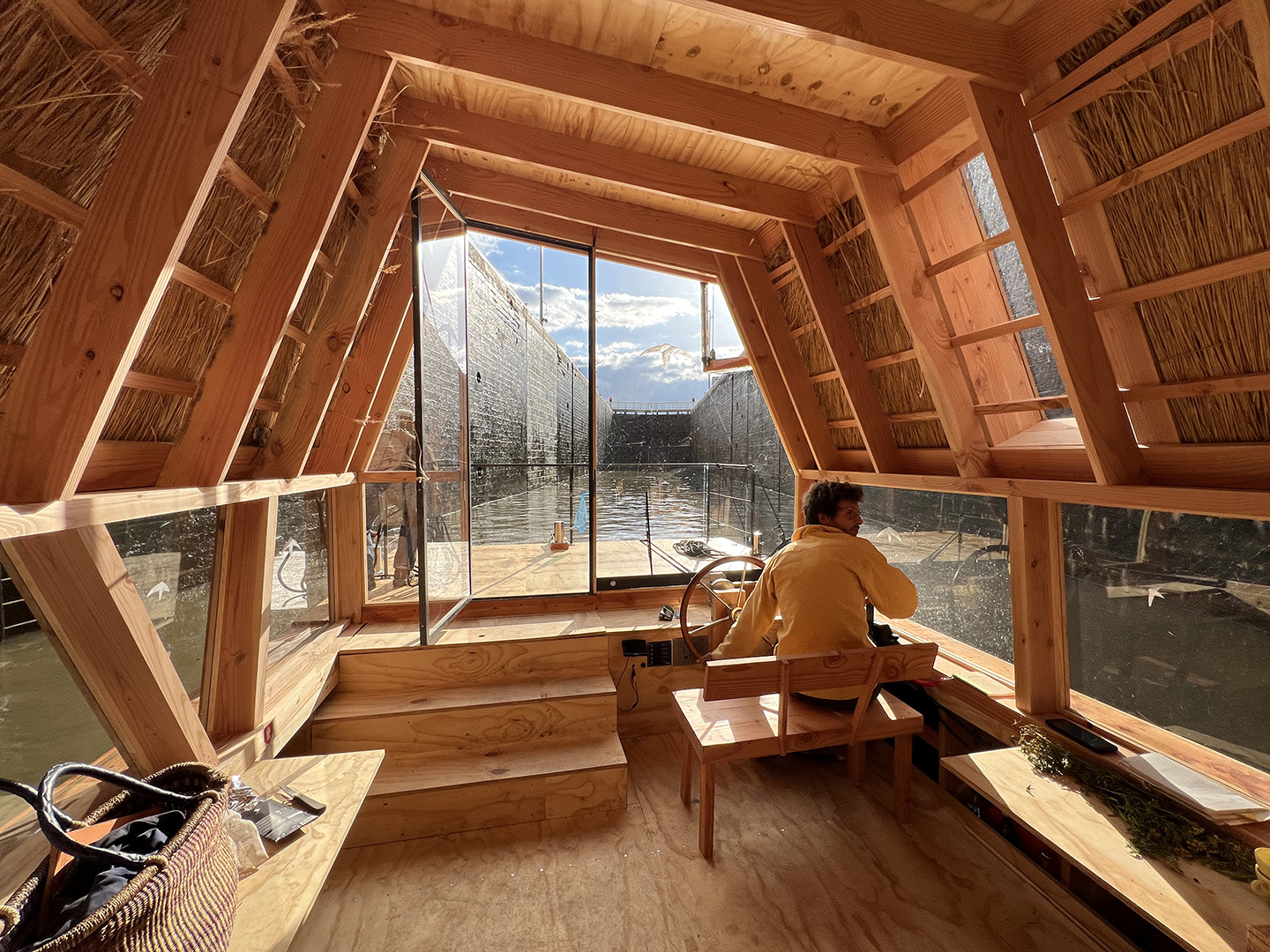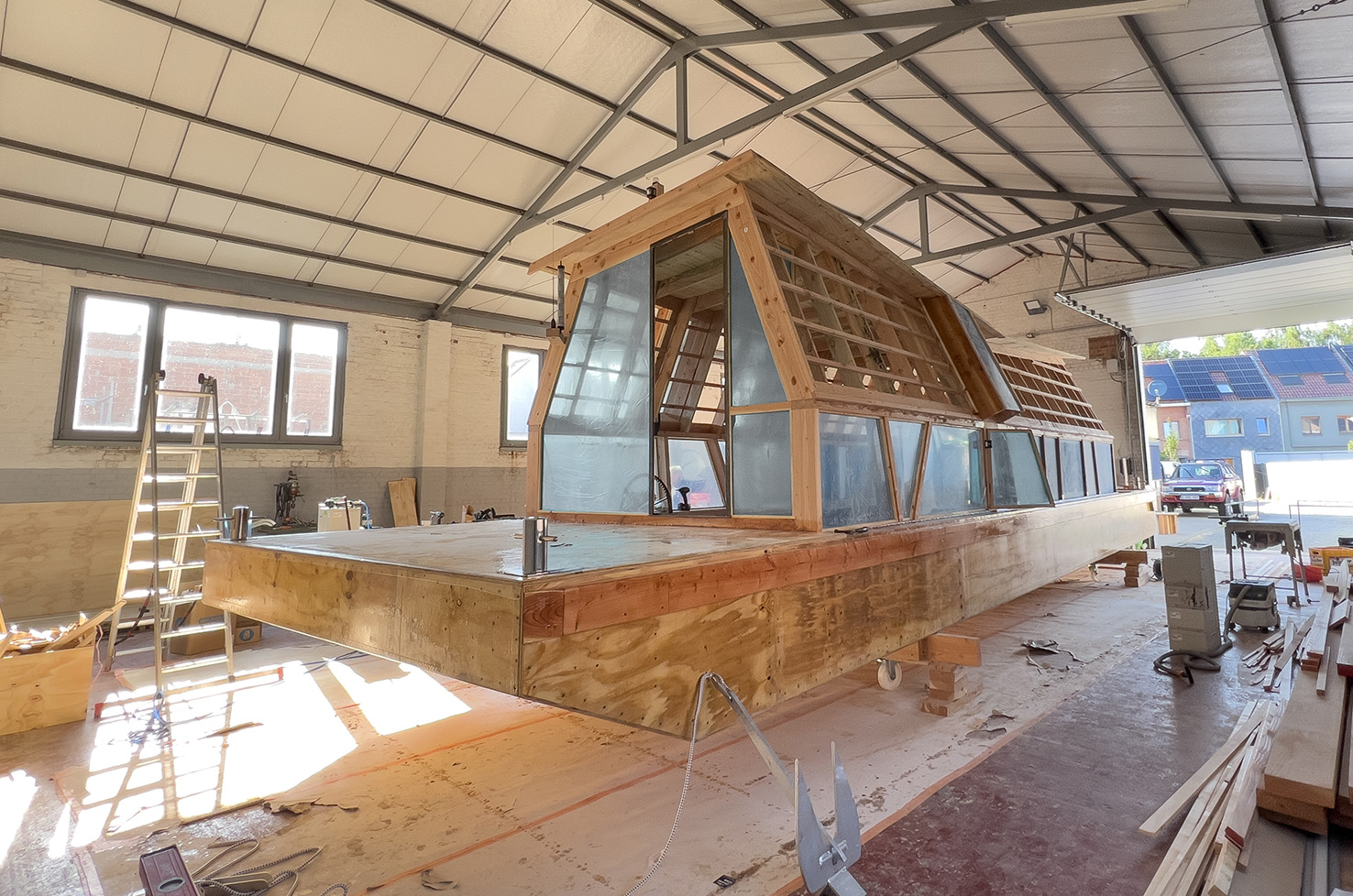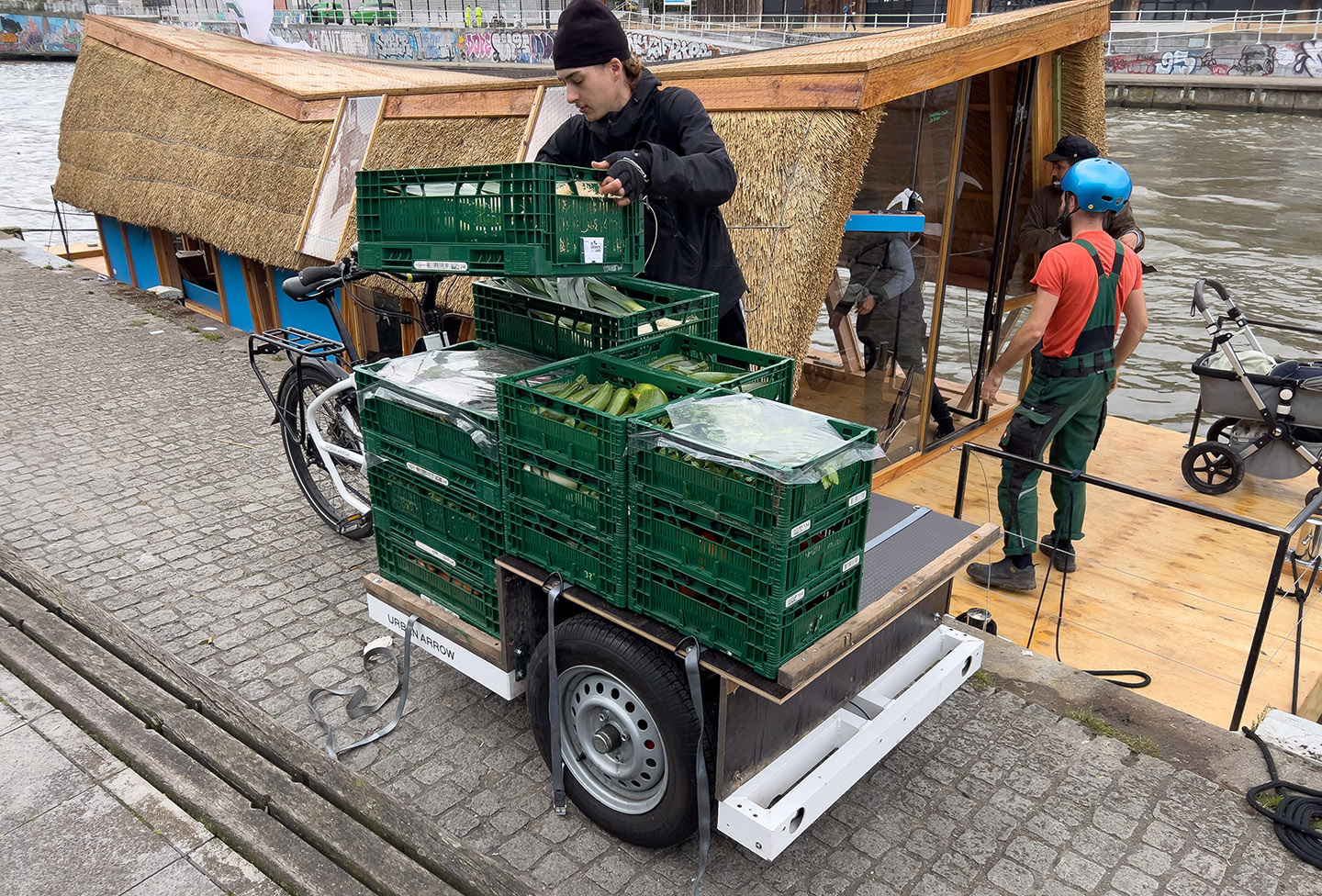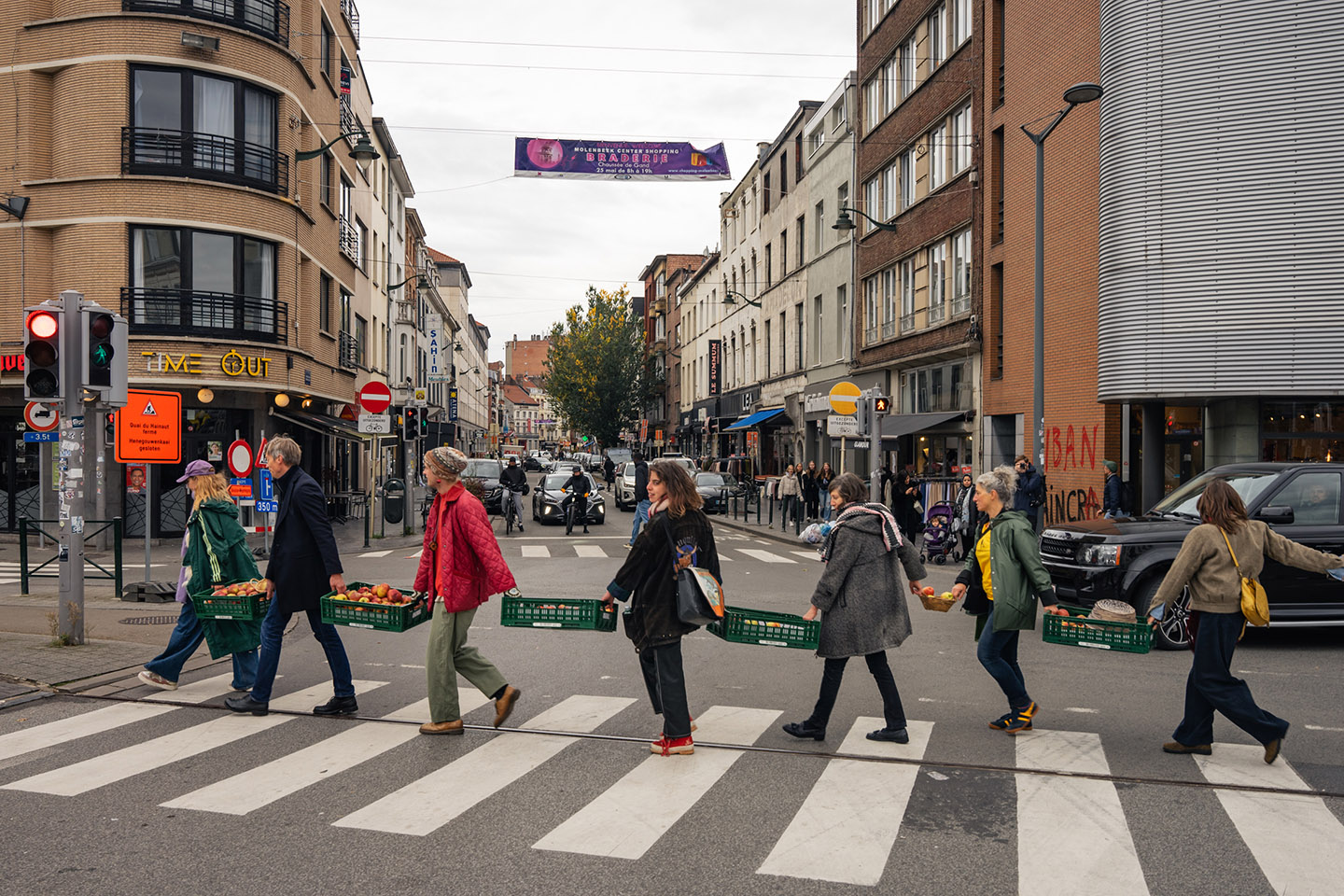 A Movement from the country into the Belly..., a wooden canal boat is a call to action to reconsider our food systems and the interdependencies that shape them. Functioning as a new agri-cultural platform, In the Belly.. supports food transport and cultural production by moving food into the belly of the European Capital city of Brussels using the existing infrastructure of the Brussels-Charleroi canal. In the Belly... redefines transportation logistics from trucks to boat to bike; gathering food from farmers, bundling, sorting and packing on the boat and parading through the city by bike onto the shelves of cooperative stores and into collective kitchens and further into the bellys... In the Belly... was commissioned by GLUON in partnership with Innoviris, Good Food Brussels, VUB, EIT Food, and UGhent. This project has received funding from Innoviris, the National Lottery and S+T+ARTS (Science, Technology & the Arts), an initiative of the European Commission, launched under the Horizon 2020 research and innovation program.