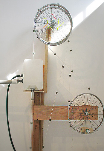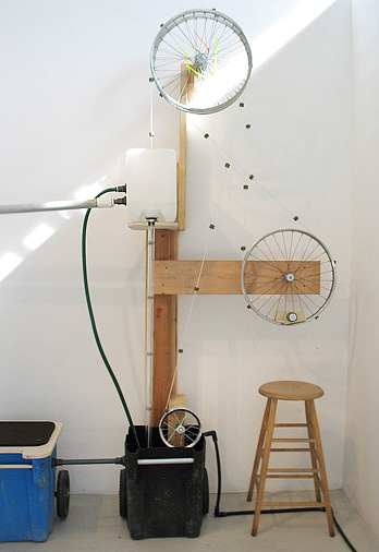 Materials: wood, pvc, rope, bicycle wheels, mint