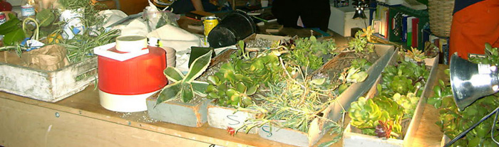 Offshoots has had 3 incarnations. It stemmed from the desire to distribute the proliferating backyard gardens in a wealthy neighborhood of San Francisco. Futurefarmers' Amy Franceschini asks people to donate offshoots of their plants which are then distributed out to the larger public via a mobile potting shed. Each donation is tagged with the donors name, email address, location, plant identification and care instructions. The bottome half of the tag remains blank and will be filled out by the recipient. (see tag below). Once enough offshoots have been collected, they are separated by families and distributed to the public in a handmade bag with soil and starter pot. Each recipient is asked to contact the donor via email with a thank you note. Each recipient fills in their name, email address and location and is asked to document the plant in its new home. Futurefarmers keeps a database of all donors and recipients in order to map the distribution of the plants through this project. *Some people donated herbs, homemade wine, jam and other fruits. With this we serve the wine to the public and provide tea made with the herbs. |