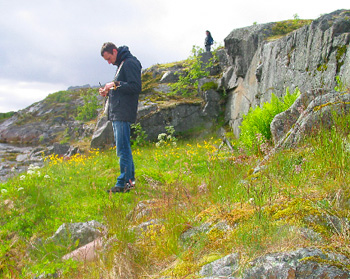 10am: 3km walk to camping area. Not so nice, but hitchhiked with a man who happened to be a Mapmaker for Norwegian Institute of Land Inventory. He marks 3 meter x 3 meter squares in the forests which are monitored for changes and pollution over a 5 year period. He said there was no pollution in Lofoten.