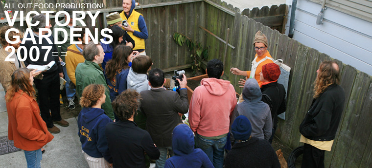 | |  | | A Public Network of Seed Stewards = Preserving genetic diversity | | Amy Franceschini, Lead Artist | | www.futurefarmers.com Amy Franceschini’s art practice questions and challenges social, cultural and environmental systems through interdisciplinary and collaborative practices manifested "on" and "offline" in the form of dynamic websites, installations, open-access laboratories, and educational platforms that encourage new formats for engagement and production. Often taking form as long-term engagements with the public, Amy's projects interrogate the politics of space and ways that globalization affects the natural and built environment. The images of growth pervading her work invoke an appreciation for finite resources and function as a metaphor to value and nurture our own creative resources. Amy founded Futurefarmers in 1995, and Free Soil in 2004. Her solo and collaborative work have been included in exhibitions internationally including ZKM, Whitney Museum, NYMOMA and SFMOMA. She is the recipient of the Artadia Award, Eureka Fellowship and SFMOMA SECA. BFA, San Francisco State University; MFA, Stanford University. | | Matt Gonzalez, Collaborator/ Liaison | | www.gonzalezleigh.com www.mattgonzalez.com Matt Gonzalez graduated from Columbia College in New York City in 1987 where he studied Political Theory and Comparative Literature. In 1990 he received his J.D. from Stanford Law School where he a member of the Stanford Environmental Law Journal. In 2000, Gonzalez became the first member of the Green Party to win elective office in San Francisco. He was elected to the San Francisco Board of Supervisors, representing District 5, which includes the Haight, Western Addition, and Inner Sunset neighborhoods. Gonzalez is also a strong supporter of the arts and hosted a monthly art opening in his office at City Hall. Matt is an important part of this collaborative constellation, as he understands the role of the artist as cultural worker and the importance of art and civic engagement and he will serve as the liaison with city agencies and development of VG2007+. | | SFMOMA, Presenting organization + educational support | | www.sfmoma.org The San Francisco Museum of Modern Art has commissioned an exhibition of VG2007+ as well as providing programmatic support and publicity. | | Arcangelo Wessells, Gardener/ Botanist | | www.weedwalk.com Arcangelo Wessells is the inaugural VG2007+ gardener. | | Garden for the Environment | | www.gardenfortheenvironment.org Garden for the Environment, through its nationally acclaimed one-acre urban demonstration garden, offers environmental education programs about organic gardening, urban compost systems and sustainable food systems. Since its founding in 1995, the garden has operated as a demonstration site for small-scale urban ecological food production, organic gardening and low water-use landscaping. Today, GFE ’s programs include four central educational elements; a three month intensive Gardening and Composting Educator Training program, monthly Compost Education workshops conducted at the garden and community gardens throughout San Francisco, the Resource Efficient Landscape Education series, and the School Education program offered in partnership with San Francisco Unified School District and San Francisco’s Department of the Environment. GFE provides a physical garden site and integration of VG2007+ into their existing educational programs, horticultural expertise and administrative support. | | | |   | Shaggy and Nathan of the Big Blue house on Balboa- first Victory Gardeners taking an oath to tend, harvest and save seeds.  | |